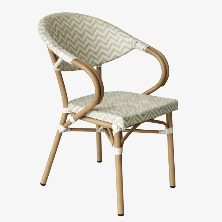 Con una estética atemporal de inspiración parisina, la silla Rivoli es perfecta para crear ambientes elegantes y acogedores en terrazas urbanas, espacios exteriores con encanto y proyectos de hostelería contemporánea.